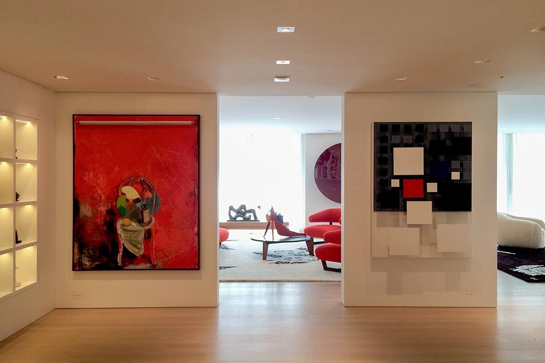 Crear un espacio que se sintiera como un museo —pero que al mismo tiempo funcionara como un cómodo hogar familiar— no fue una tarea sencilla. Nos enfocamos en diseñar una distribución y una atmósfera que permitieran que las obras de arte brillaran, manteniendo a la vez un ambiente cálido y habitable.