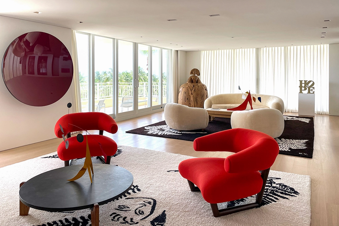 Este apartamento en el Ocean Club de Key Biscayne fue un proyecto verdaderamente único. Diseñado para un destacado comerciante y coleccionista de arte, el hogar debía exhibir una extraordinaria colección privada que incluía obras de Picasso, Calder, Fernando Botero, Arman, Donald Sultan, Jesús Soto, Robert Indiana y muchos otros.