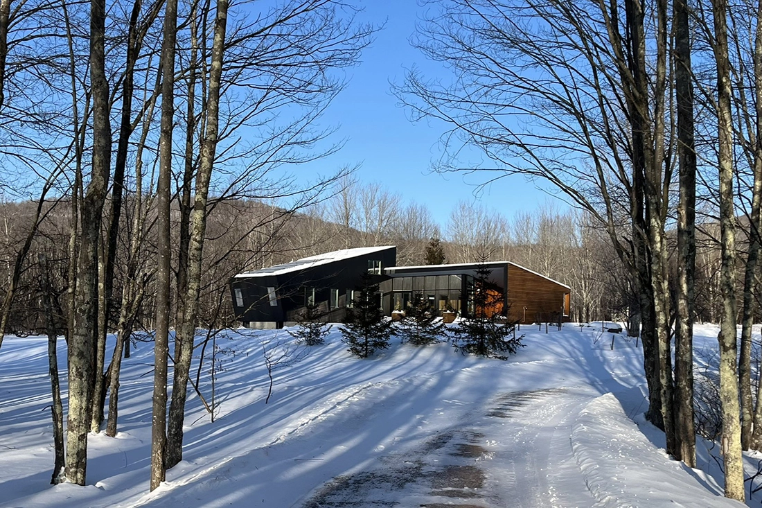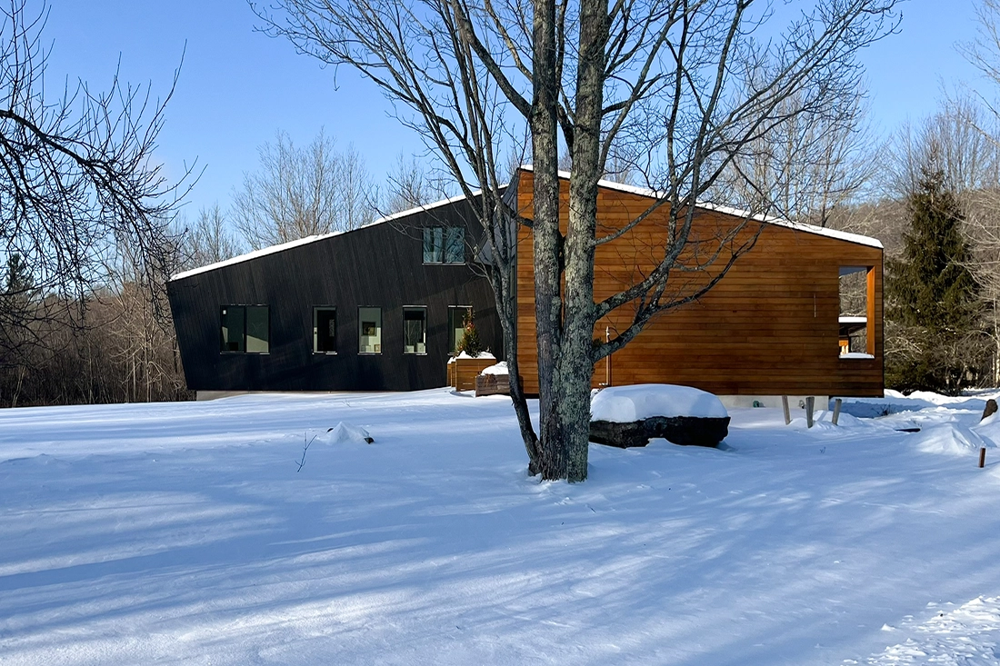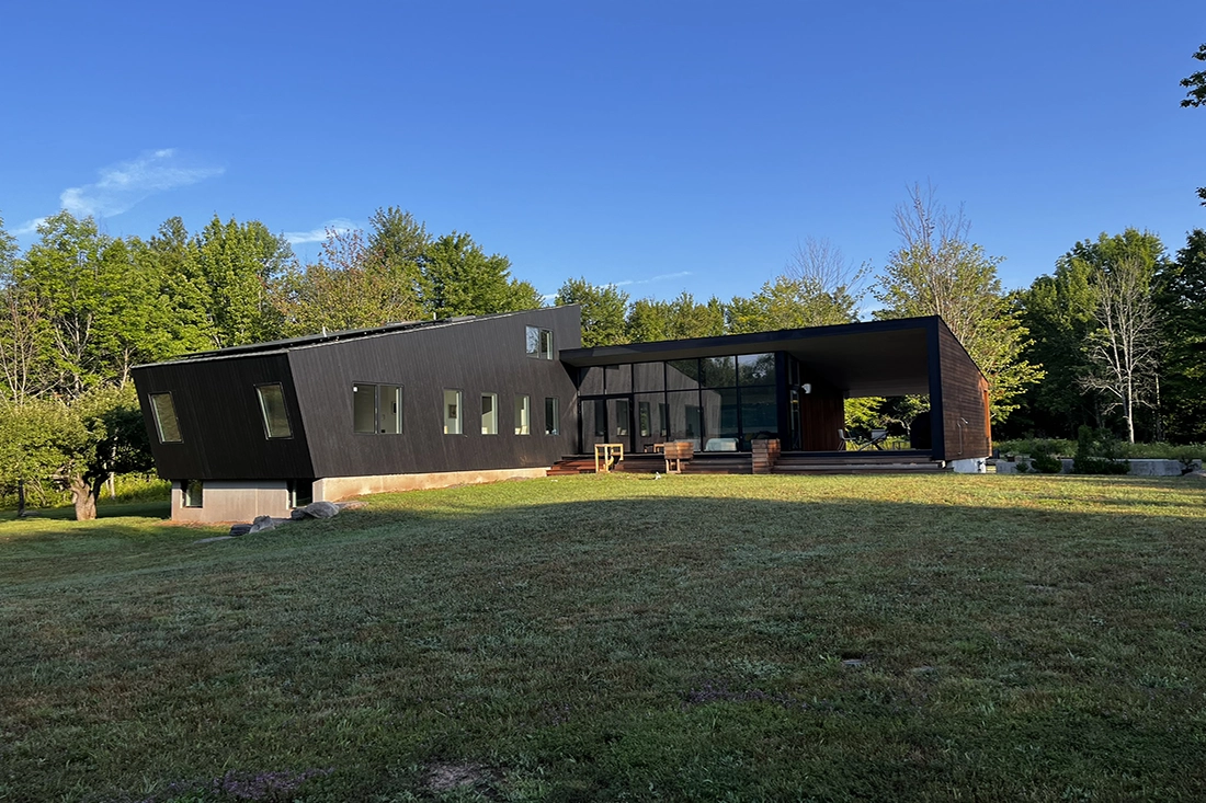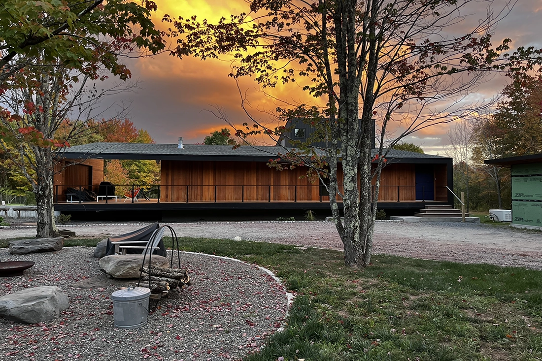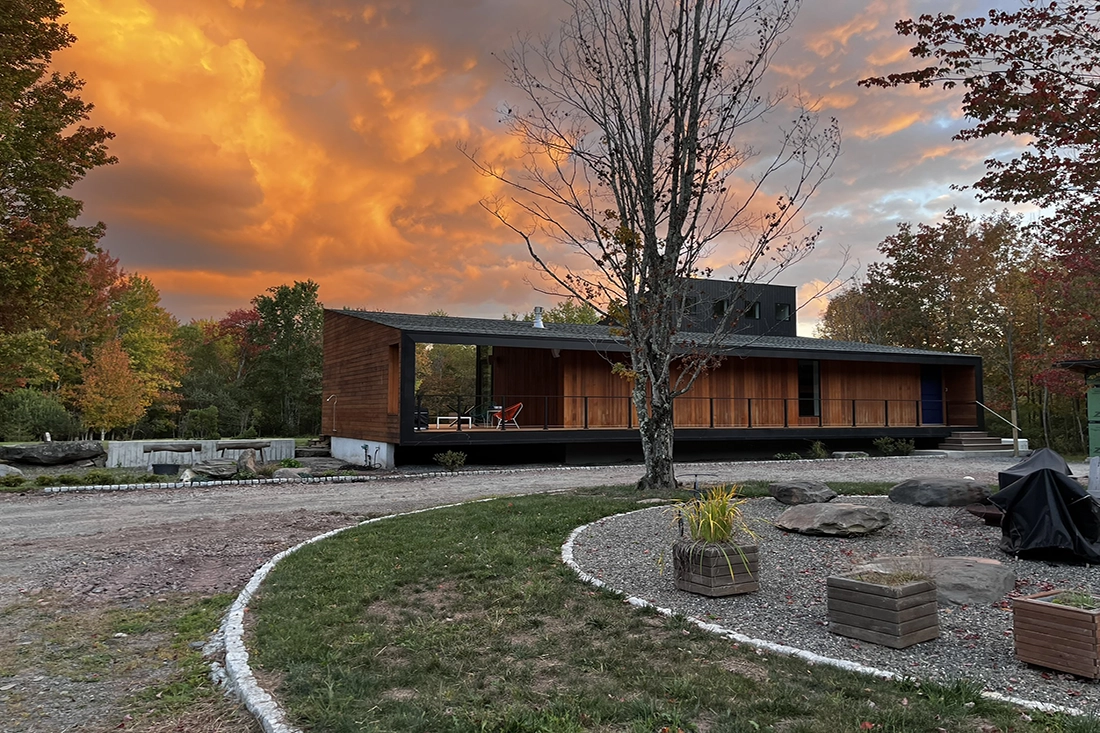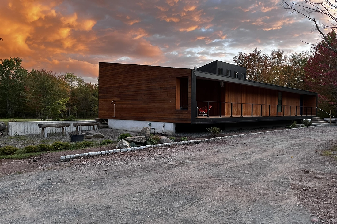 Ubicado en el sereno y pintoresco paisaje de las montañas Catskill, hemos diseñado un refugio unifamiliar que busca integrar el confort moderno con una profunda conexión y aprecio por el mundo natural. Fieles a nuestros valores ambientales, la casa es totalmente autosuficiente (off-grid); obtiene su energía de paneles solares en el tejado y el agua de un pozo propio en el terreno. Asimismo, es pionera en tecnología de hogar inteligente, lo que permite controlar de forma remota todas las funciones eléctricas.