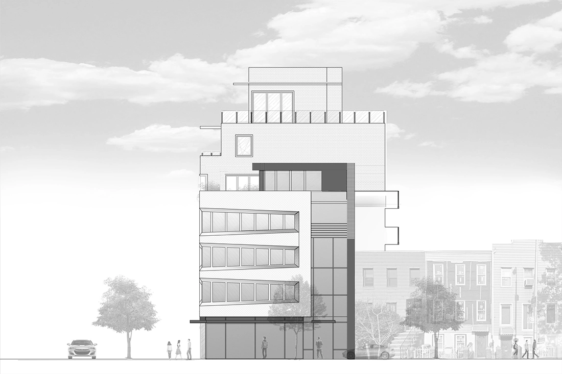 A repeat client returned to Domoarchitecture with a valuable Brooklyn corner lot and a clear directive: maximize residential and retail value while creating something distinctive in a neighborhood of standard brick buildings.