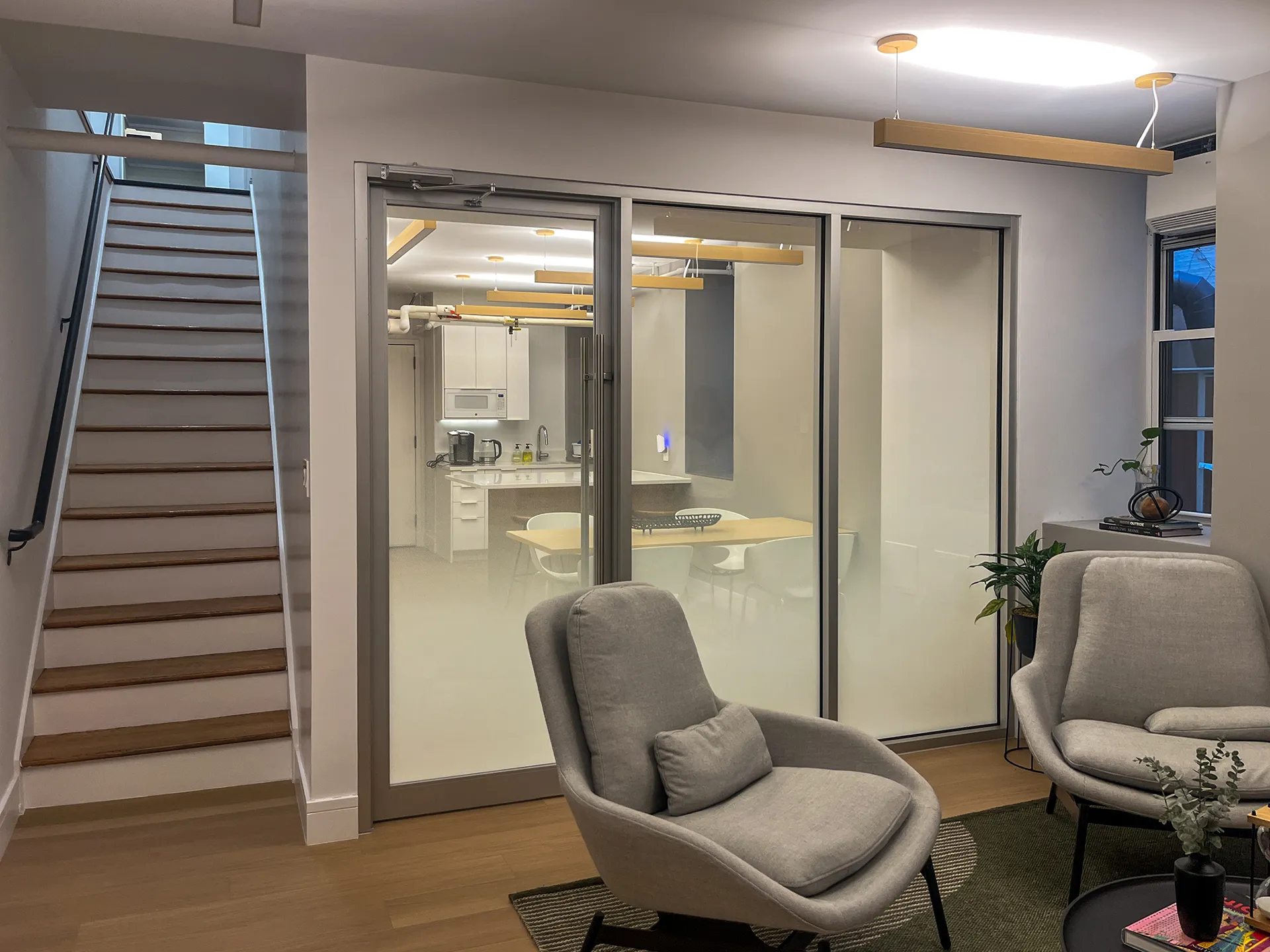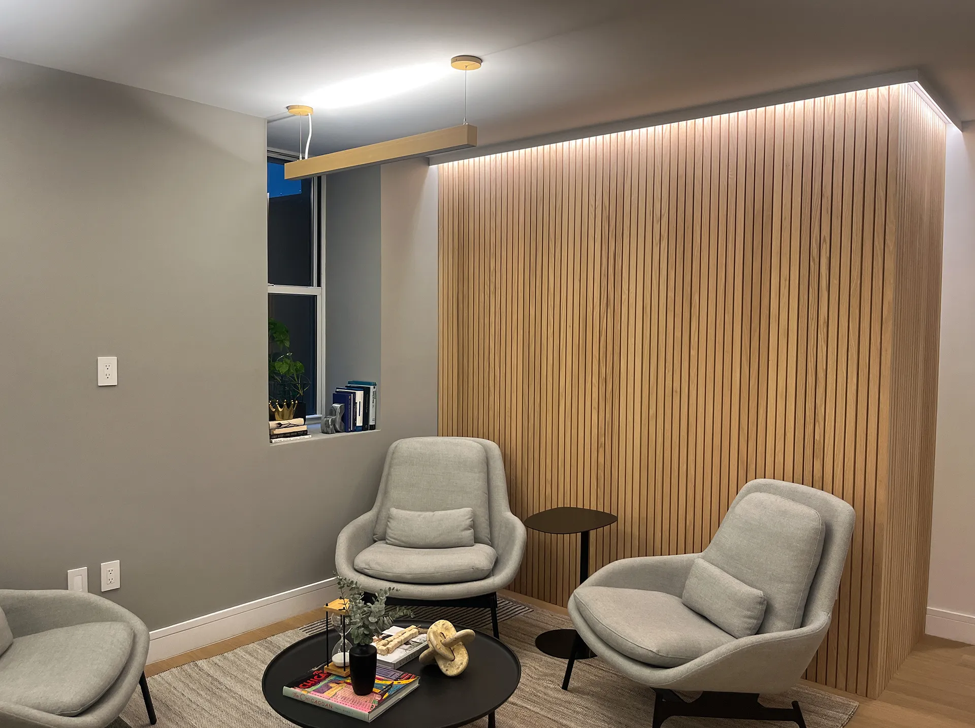 Our approach focused on what costs nothing but makes all the difference—thoughtful space planning, strategic lighting, and smart material choices. Rather than expensive finishes, we used simple materials in intentional ways to create warmth and visual interest. The result transformed staff perception of their workplace.
