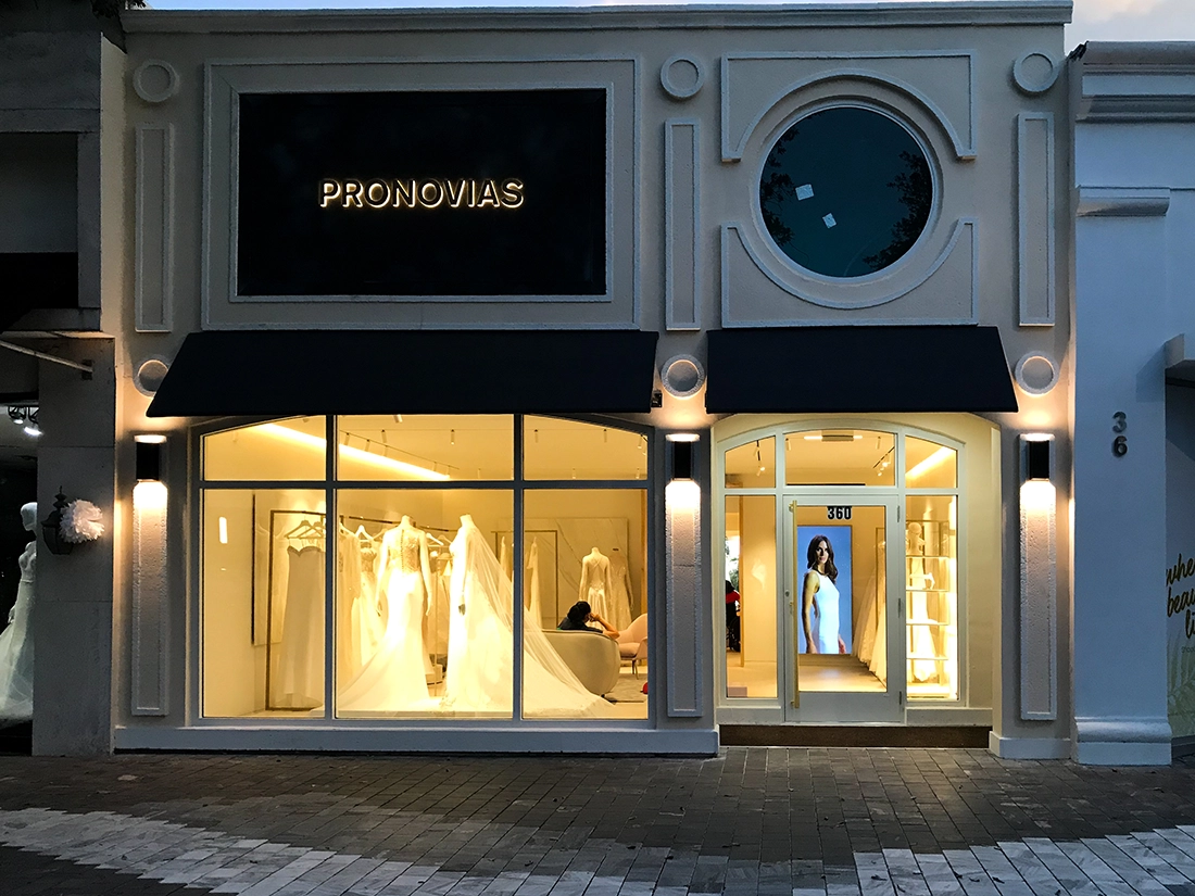 Partnering closely with the Pronovias design team in Spain, domoarchitecture delivered full architectural and project management services, guiding the project from initial concept through final completion. Our turnkey approach encompassed design development, competitive bidding, permitting, and on‑site execution—ensuring a seamless experience for the client at every stage.