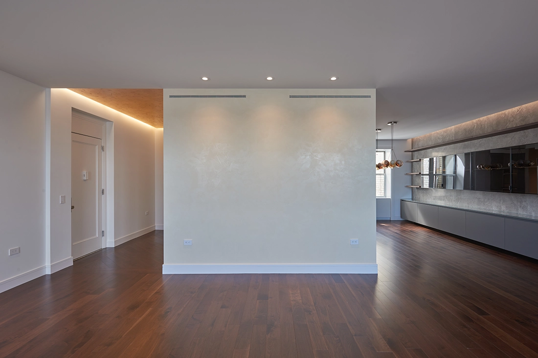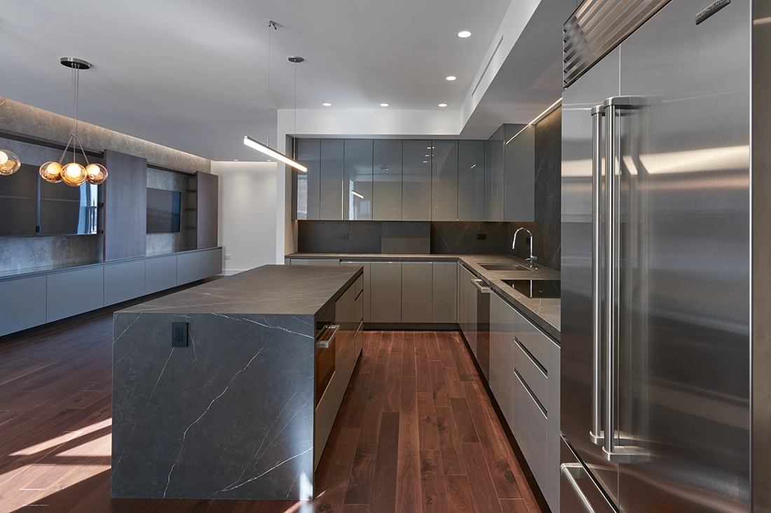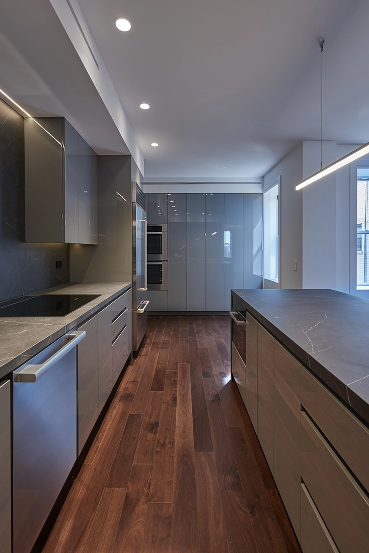 The apartment’s expansive views of Riverside Park offered a beautiful backdrop but also presented a challenge: without thoughtful planning, the generous layout could easily feel too open or disconnected. To ensure cohesion, we once again positioned the kitchen at the center of the plan, anchoring the home’s primary daily rituals—cooking, gathering, conversation, and informal living.