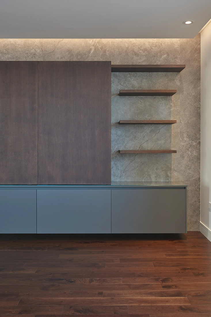 The level of detailing and finishes reflects an elevated standard of sophistication—an atmosphere suited to a senior member of the University’s leadership. Materials, lighting, and craftsmanship were selected to convey understated elegance without sacrificing day‑to‑day functionality.