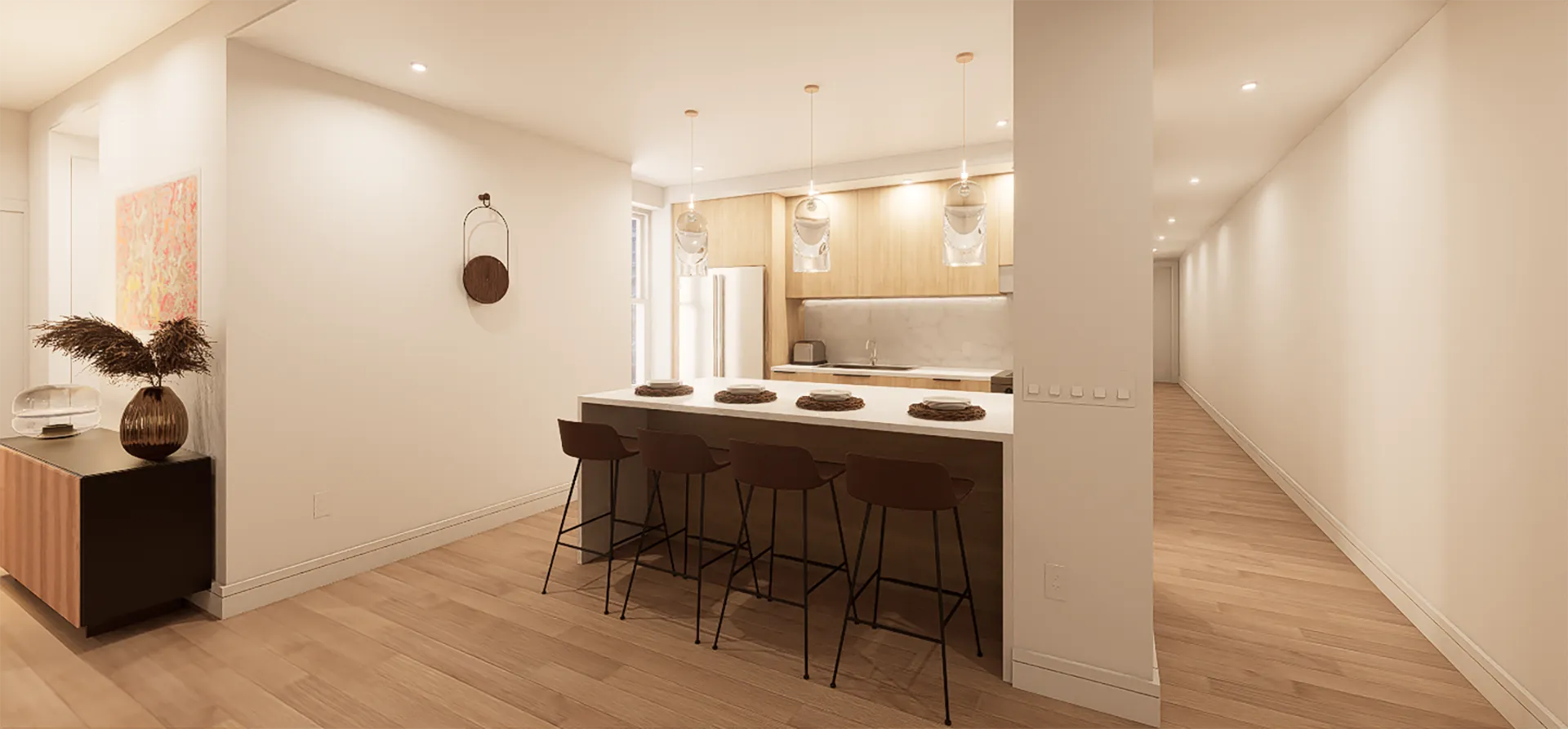 The challenge: maximize livability within a compact footprint while maintaining the level of finish quality Columbia’s senior faculty expect. Every square foot needed to work efficiently without feeling cramped or compromising on the sophistication required to attract top academic talent.